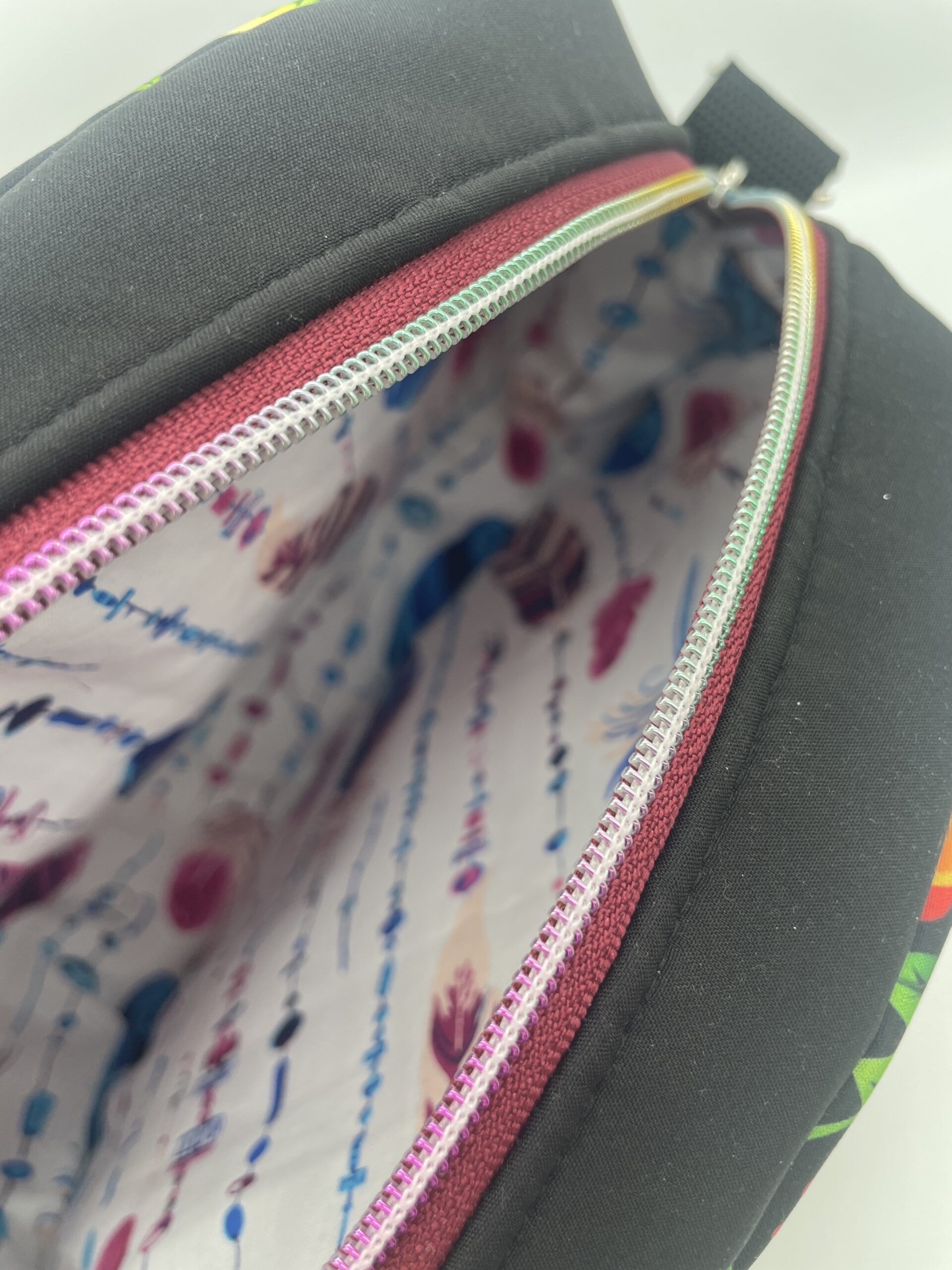 Tato kabelka je kombinací jednobarevné černé látky a moderního folklorního vzoru v odstínech žlutá, červená a modrá. Díky originálnímu designu a pečlivému zpracování působí elegantně i prakticky. Díky nastavitelnému popruhu se pohodlně přes rameno. Ideální volba pro každodenní nošení do práce.